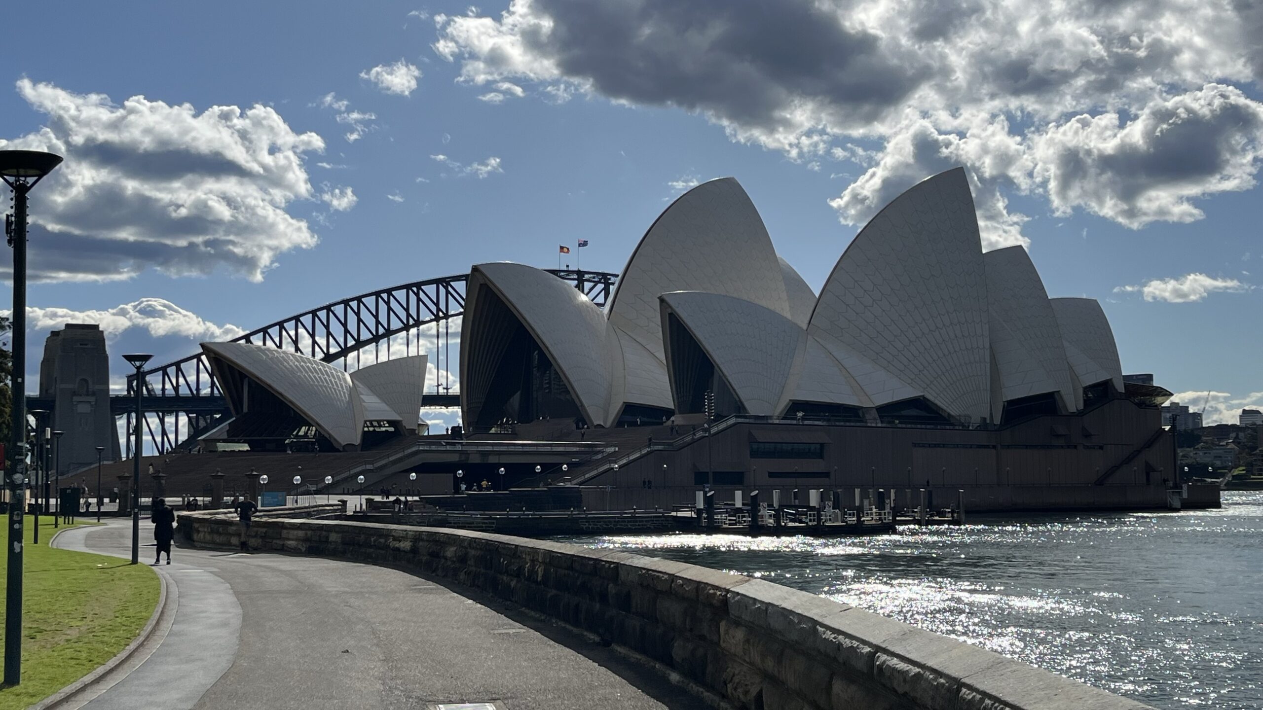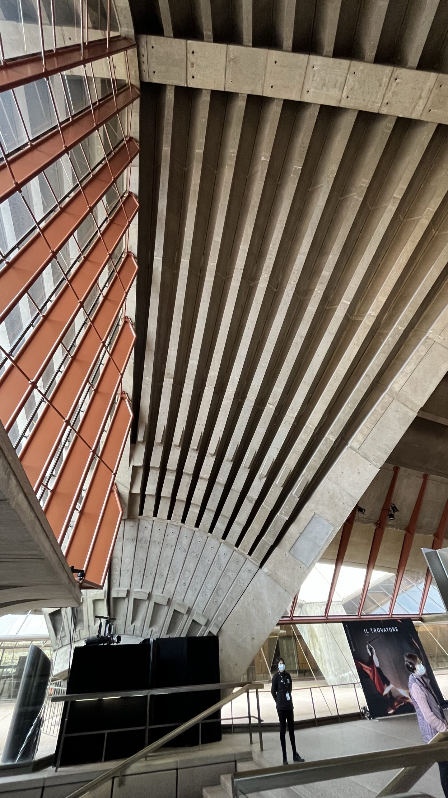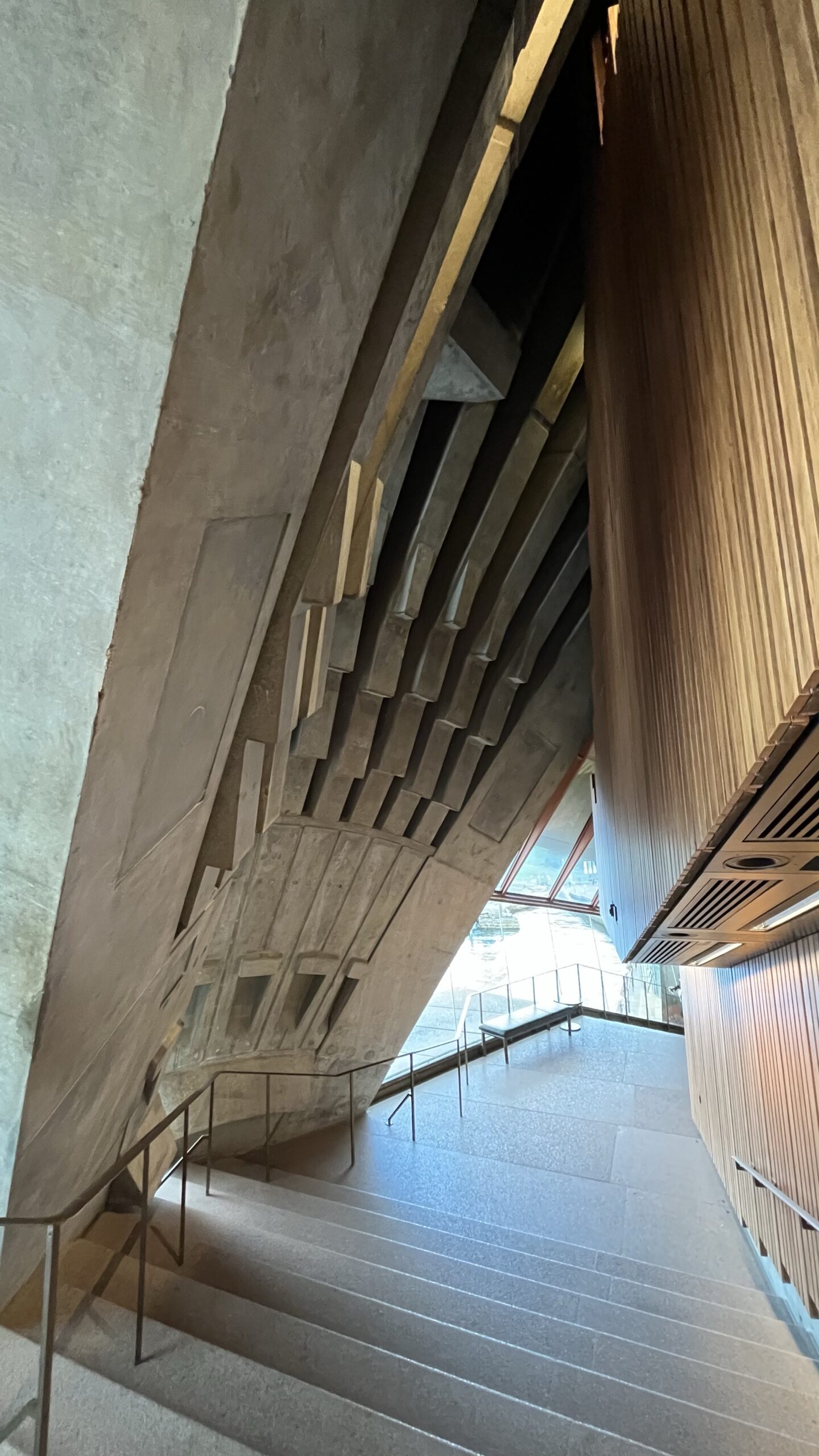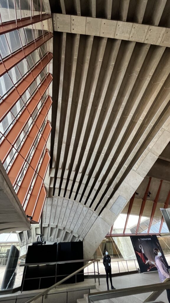 We then went to a guided tour of the opera house. A million tiles that are off-white – not white, as it would reflect too much light; an elegant concrete structure supporting the sails, and a sad history where the architect, Jørn Utzon, never actually saw the finished building, because of a dispute with the NSW prime minister in the middle of the building process – he left and never came back. Unbelievable, for such an iconic building that symbolises the city.