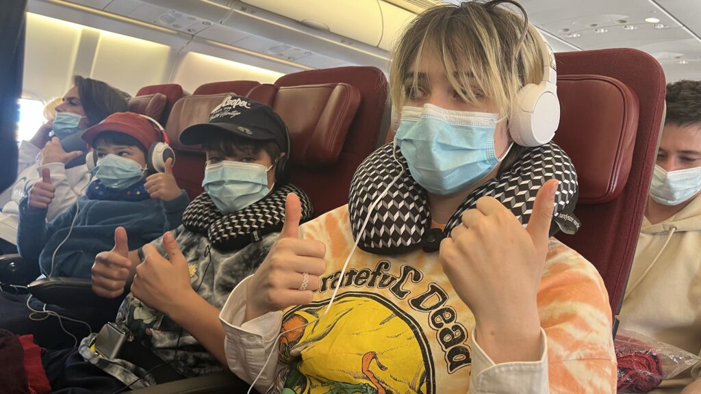Today was pretty simple really: we woke up early, dropped the rental car, checked in, and… boarded onto our first plane of the return journey, to Singapore. I learnt thanks to Sarah that I was an Airport Dad, so everyone in the family is making fun of me now.