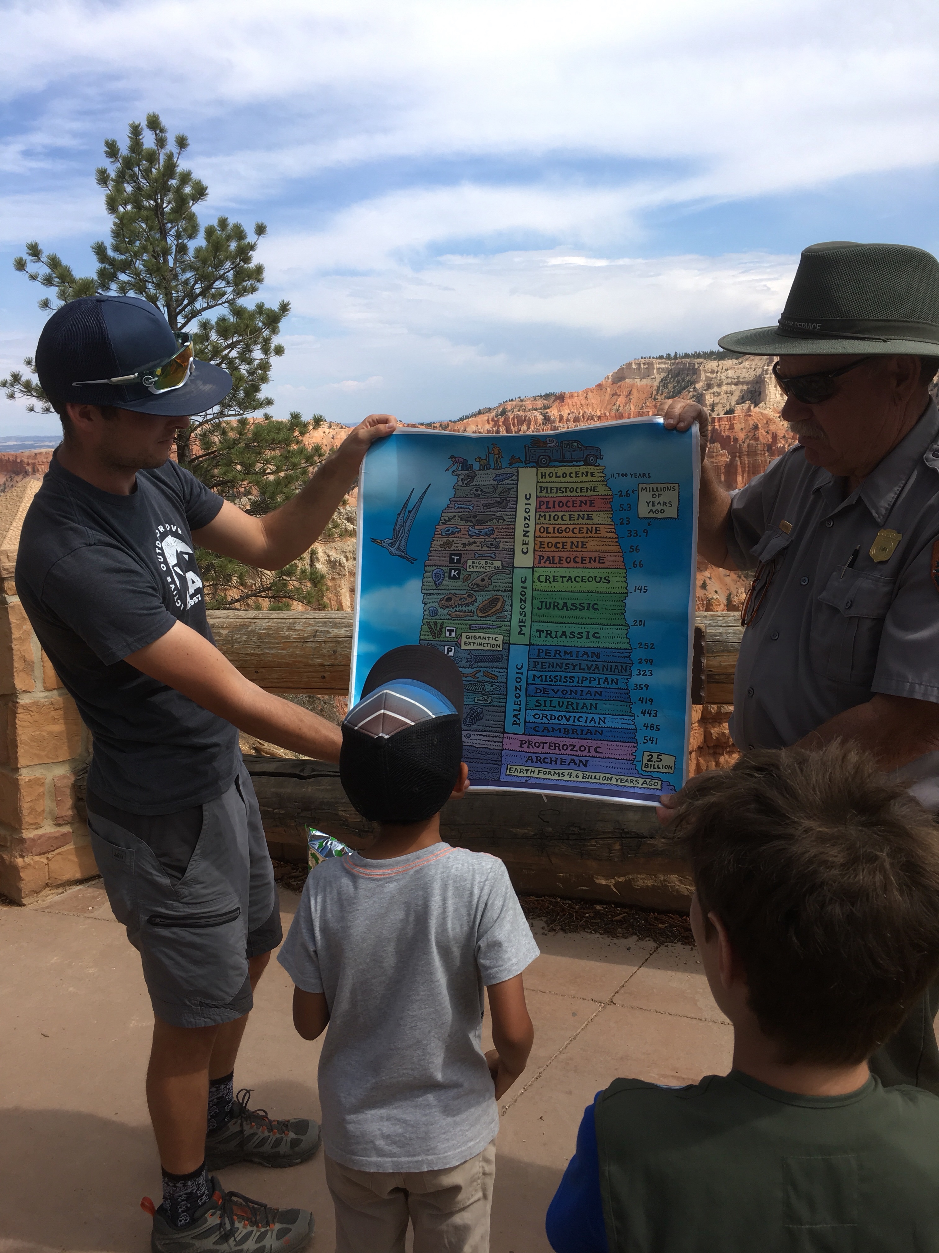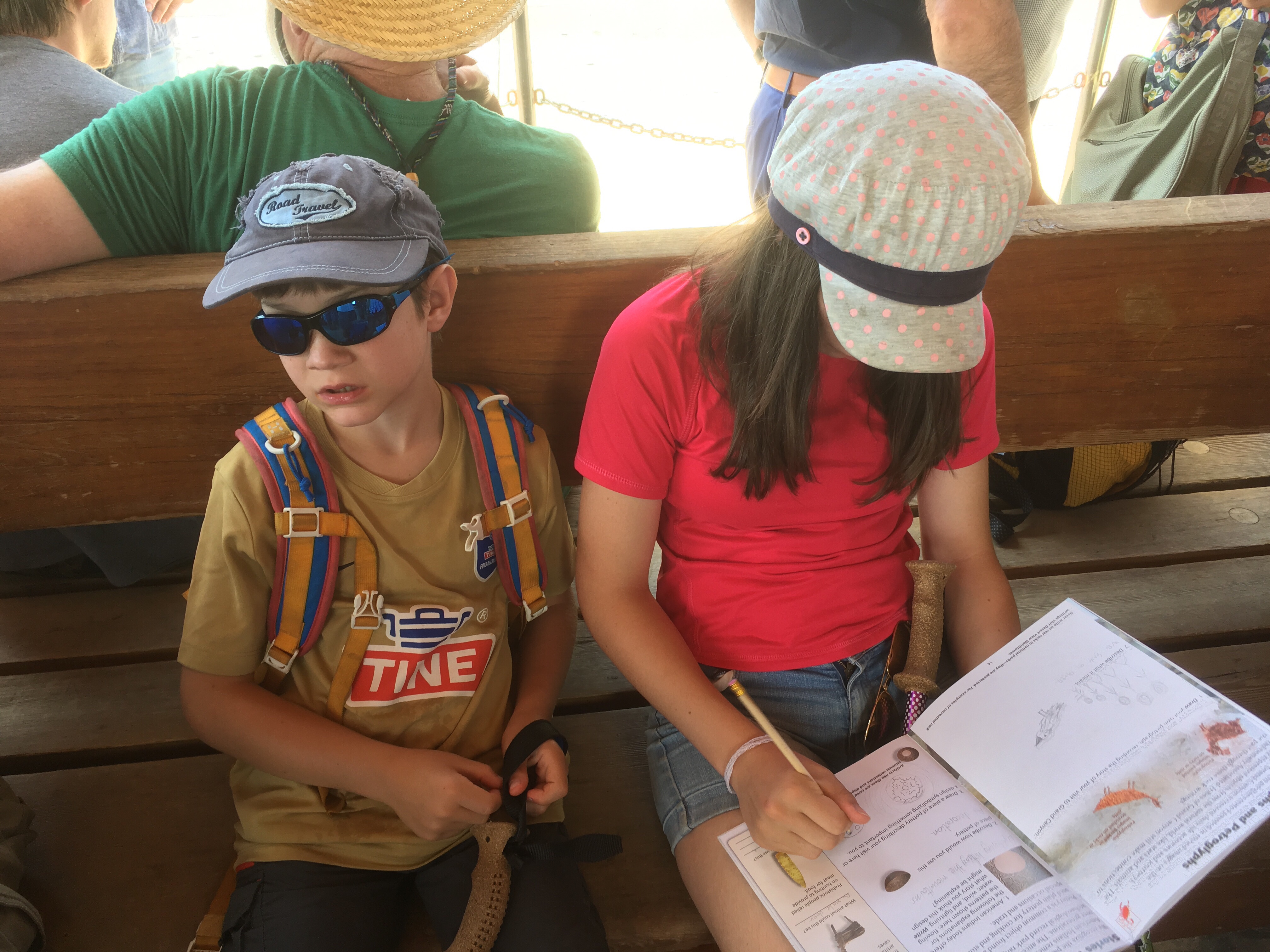 In the morning, we woke up a bit earlier than usual and caught the first shuttle bus to the park. We followed a ranger led walk about fossils, where the kids went hunting for old marine fossils.