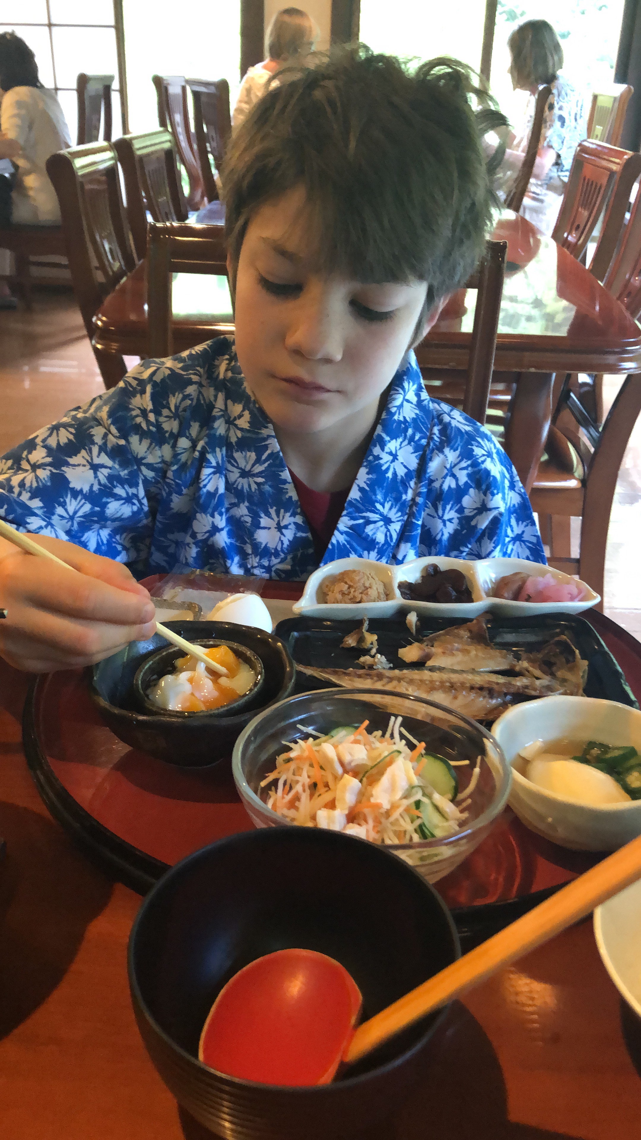 This morning we had a very traditional Japanese breakfast. I’m not too keen about fish and pickles at 8am – on the other hand it’s nice to see what they eat for breakfast… and there was coffee, so I survived.