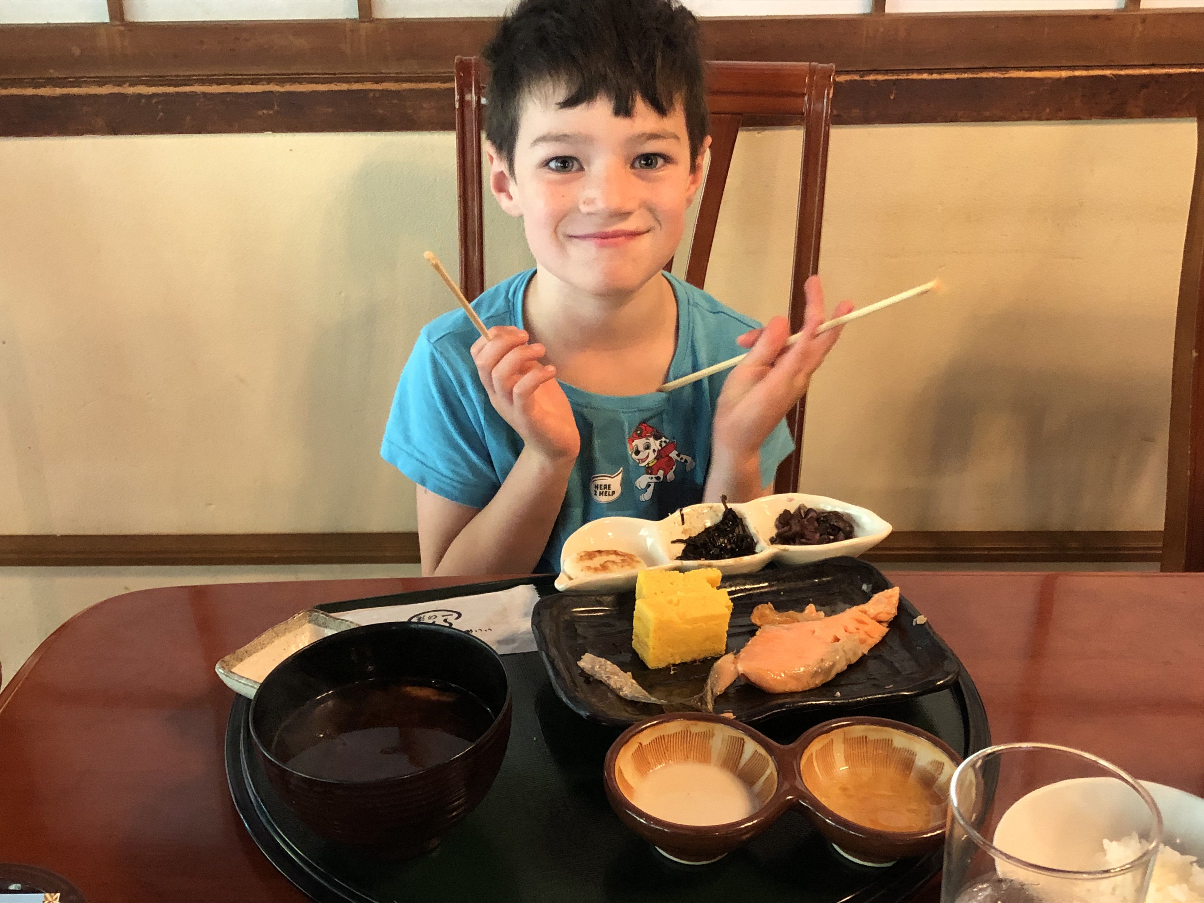 In Hakone today, we had the traditional breakfast again (a different version, though, with smoked salmon). We took the train, the ropeway, the cable car again…. The weather was fantastic, so it was a great day to be outside. Mount Fuji was covered in clouds, so we didn’t get to see more than its lower slopes.