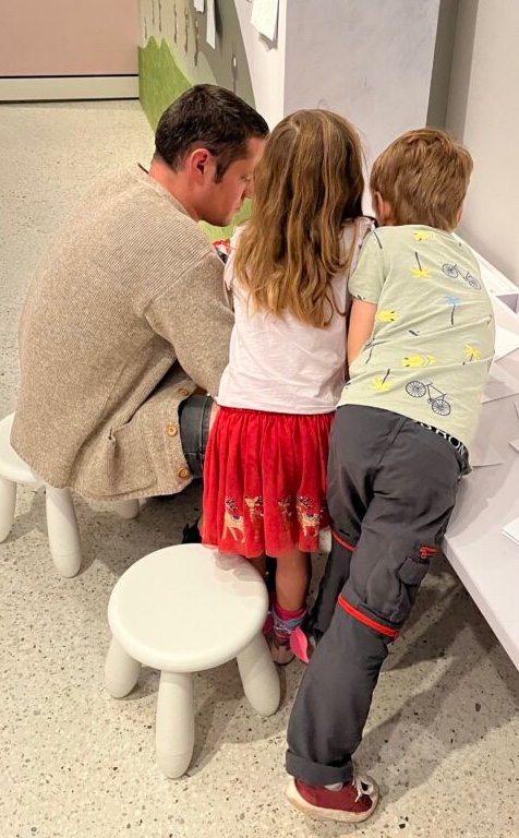 We spent the morning at the museum. It wasn’t as “contemporary” as we were fearing. We’ve seen our share of random things and installations labelled art in these museums. The visit was quite nice, varied, international, sometimes rather immersive. It triggered the kids’ curiosity – they spent time looking, watching, experiencing.