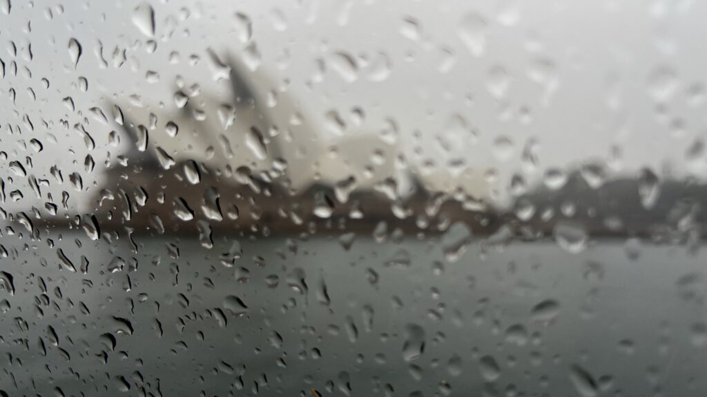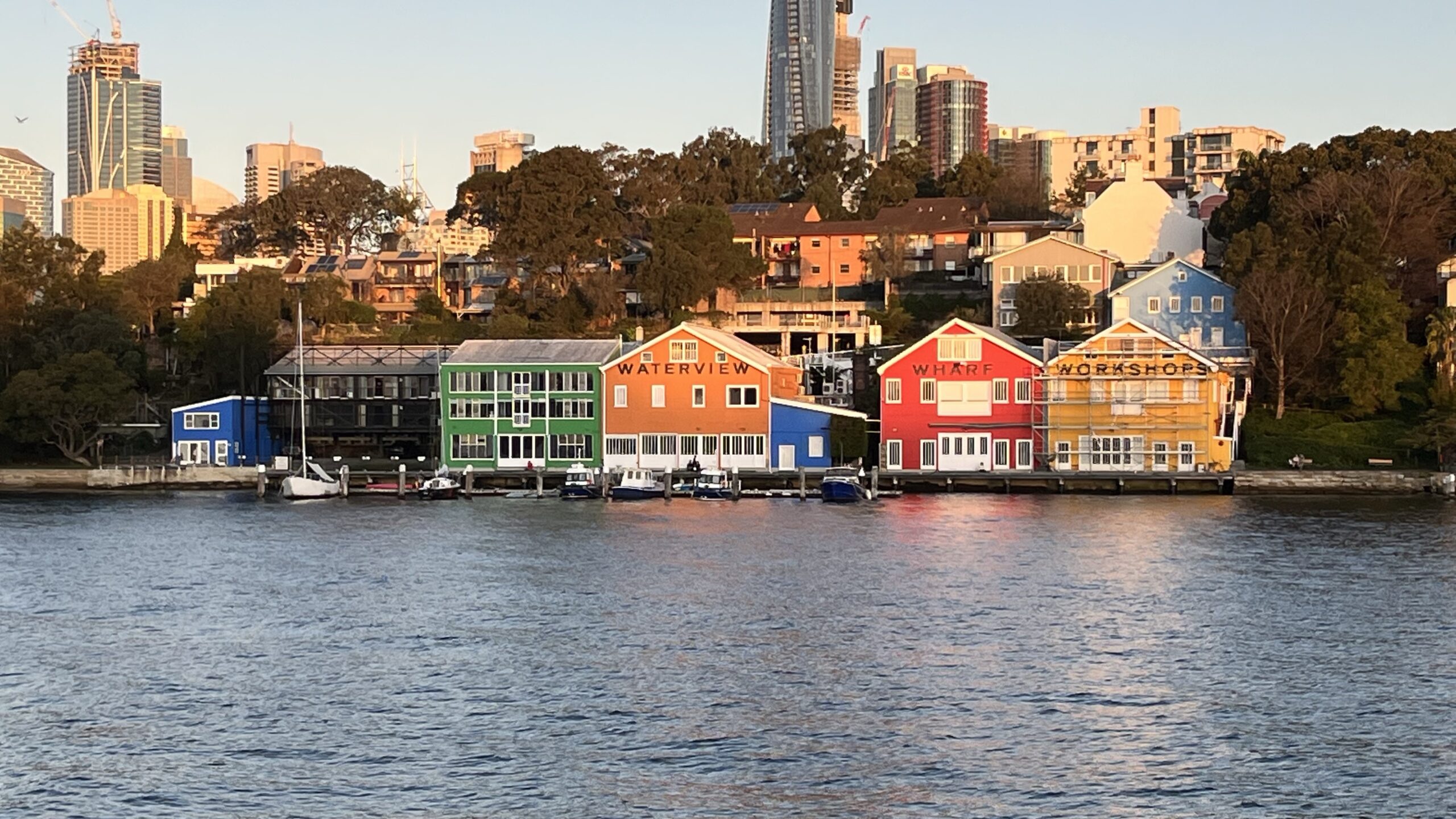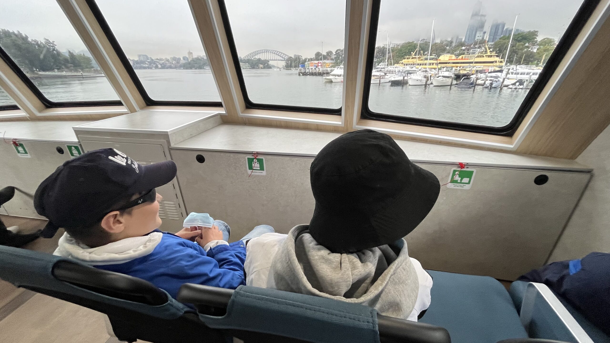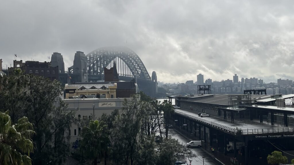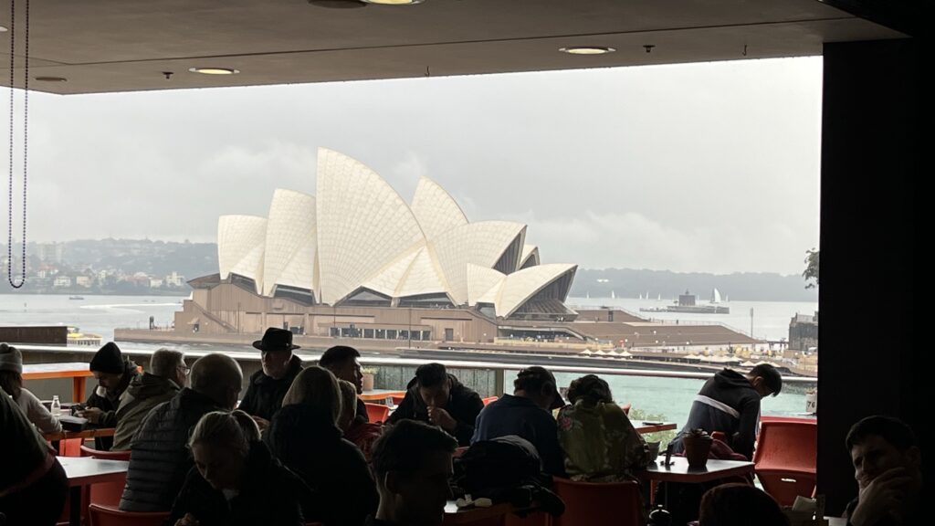 After the traditional Tour de France highlights and a good breakfast – english style, we took the bus to Balmain wharf (where we found an open library) then the city boat to Circular Quay. The weather was a succession of showers or light rain and sun, but mostly wet really.