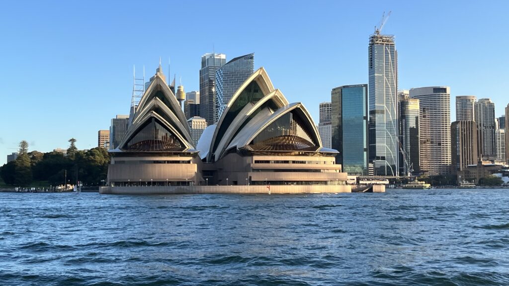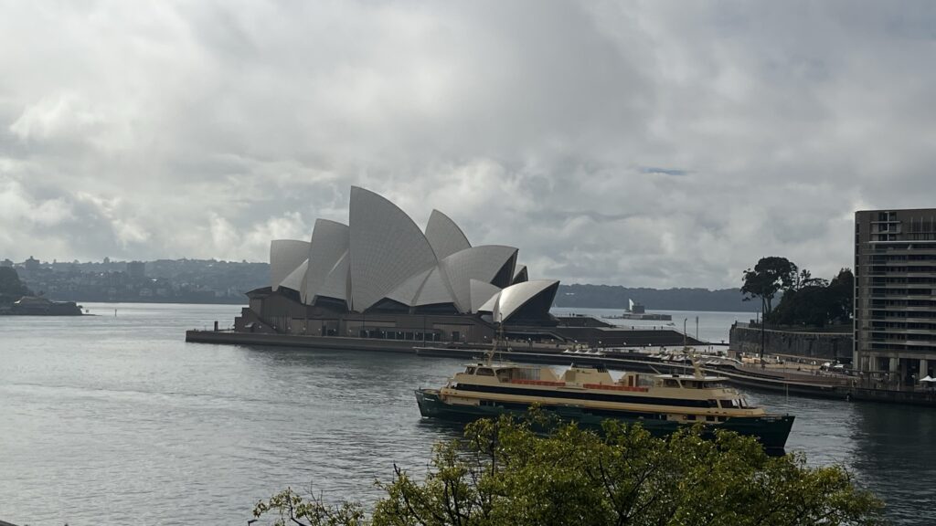 We then went to a guided tour of the opera house. A million tiles that are off-white – not white, as it would reflect too much light; an elegant concrete structure supporting the sails, and a sad history where the architect, Jørn Utzon, never actually saw the finished building, because of a dispute with the NSW prime minister in the middle of the building process – he left and never came back. Unbelievable, for such an iconic building that symbolises the city.