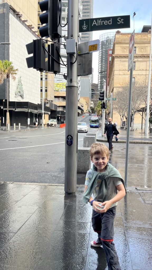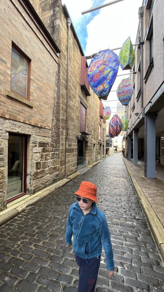 Back to the gapachon machines for Alfie and Matilda, then to the opera and the Royal Botanic Garden. Tom, the three youngest kids and I then went to the State Library of NSW and a nice exhibition of children’s book illustrations, while the others went shopping in the city center.