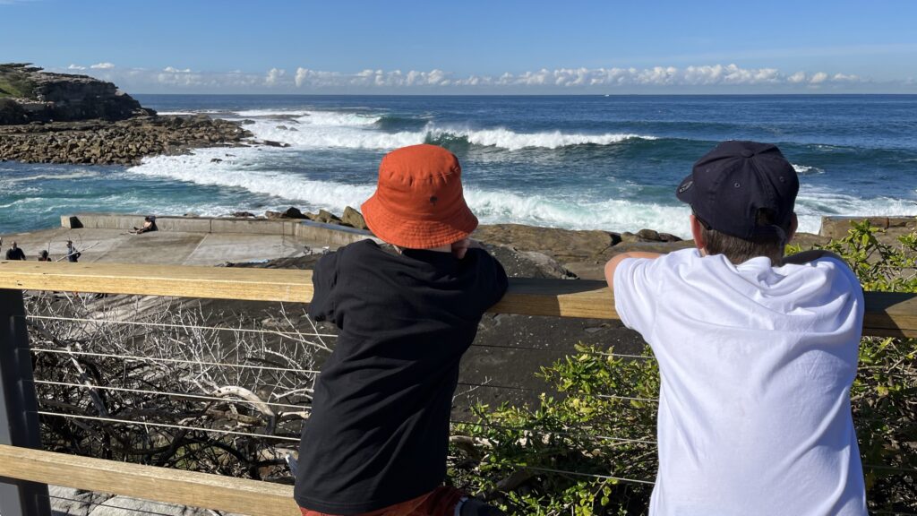 We arrived at Bondi beach mid-afternoon. The boys played in the waves for 1 1/2 hours, under the careful watch of the world famous lifeguards.