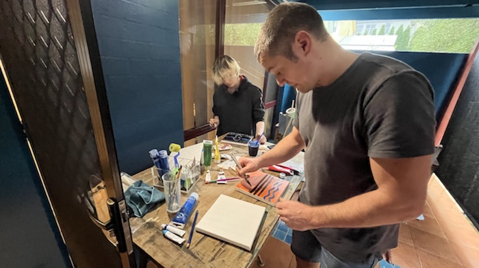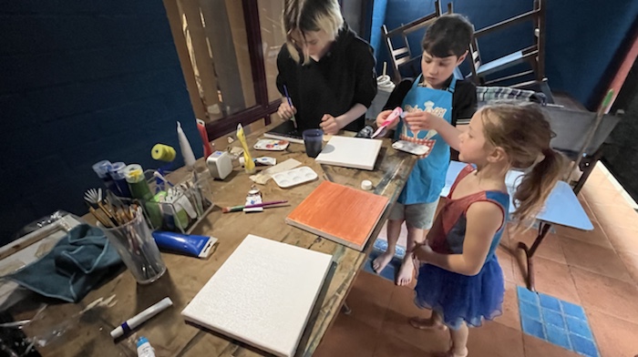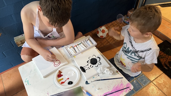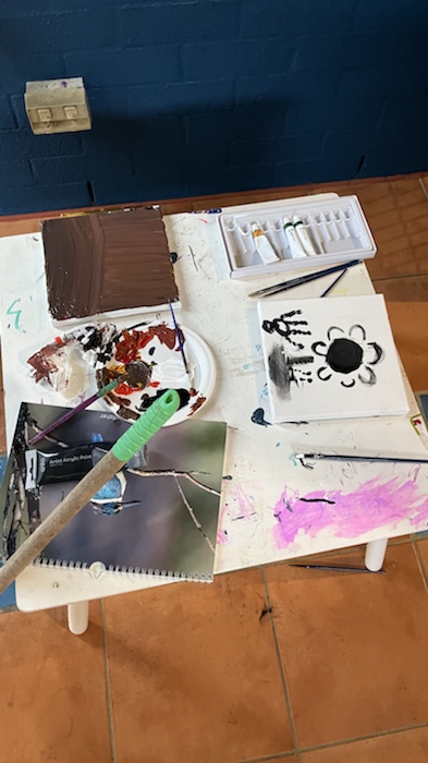 Today we ran out of things to do in bad weather. So we just took it easy, and decided to try painting aboriginal inspired art. We went to the library to get inspiration from art books. They had a seed section at this library – you can “borrow” seeds, meaning you take them, grow plants, then harvest the seeds and… bring these back to the library. We also bought canvas and paint for everyone.