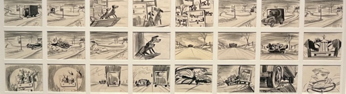 The exhibition was chronological, from the first Mickey Mouse films to the recent digital films. I thought the first part was way more interesting – maybe because of my age? The work on the artistic concepts, the colours, the style, the storyboard, how they worked from the voice recording to the animated movie, all supported by sketches and drawings.