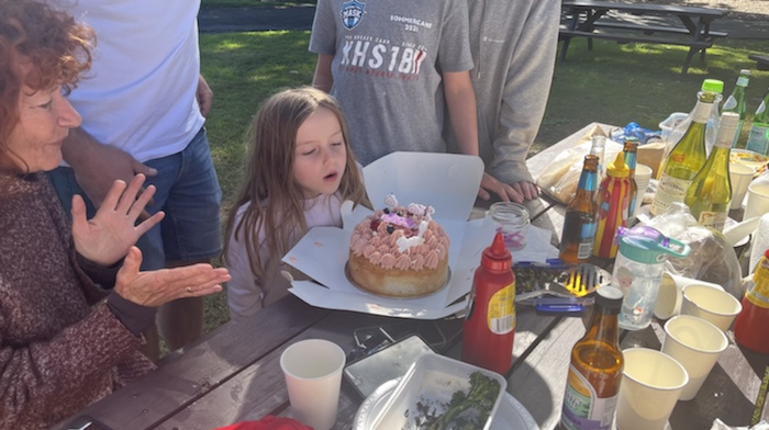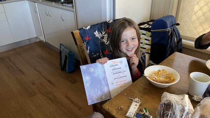 We had bbq for lunch, with Nel, Chris, Dave and James. A typical Australian bbq: sausage-sizzle. We celebrated Matilda’s 5th birthday with a delicious sponge cake covered by at least 10 cm of pink creamy topping.