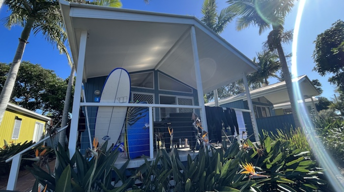 We had a coffee and ice-cream downtown, then went back to the beach for an hour of bodyboarding, before the rain forced us back to the cabins.